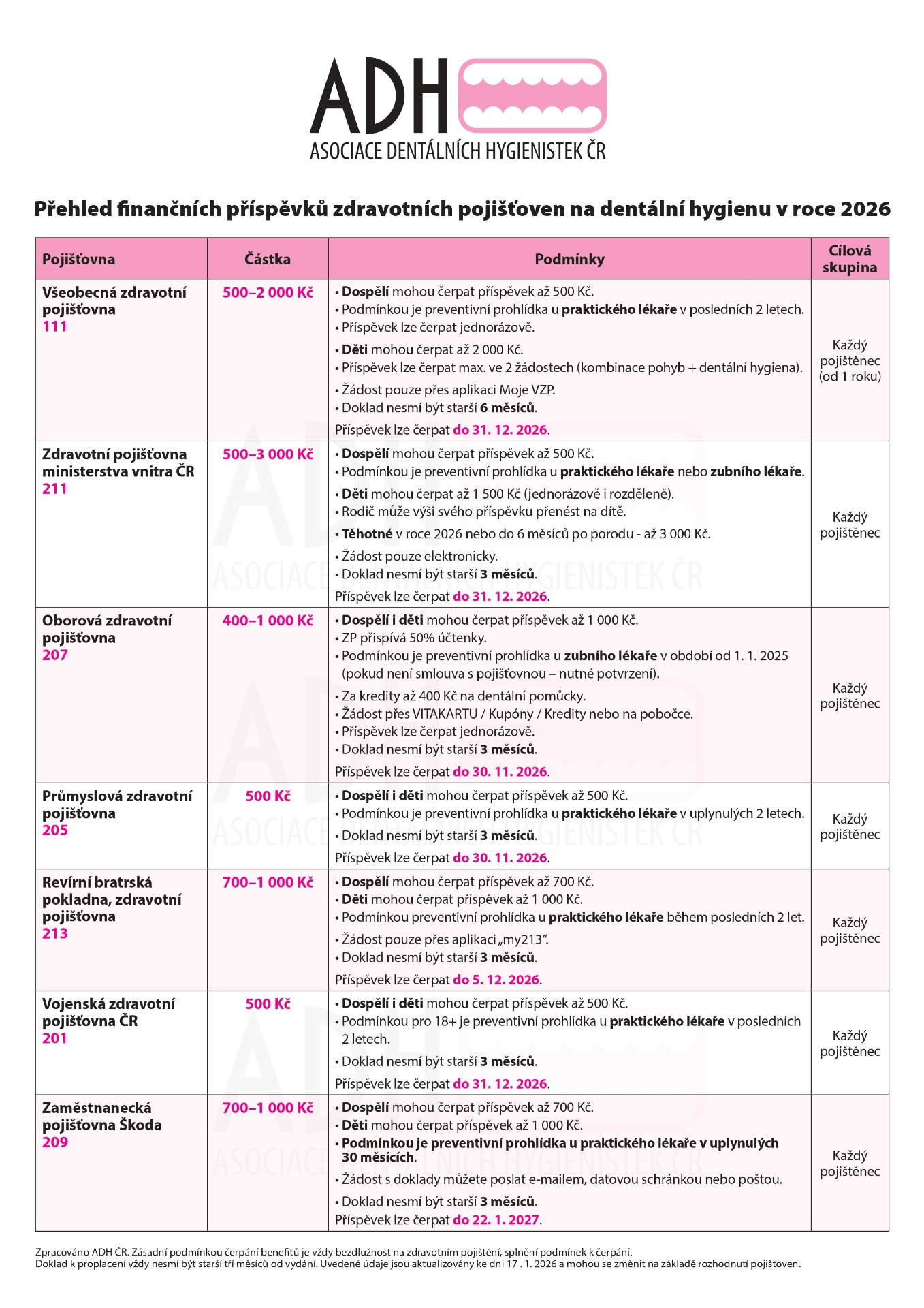 Přehled příspěvků pojišťoven